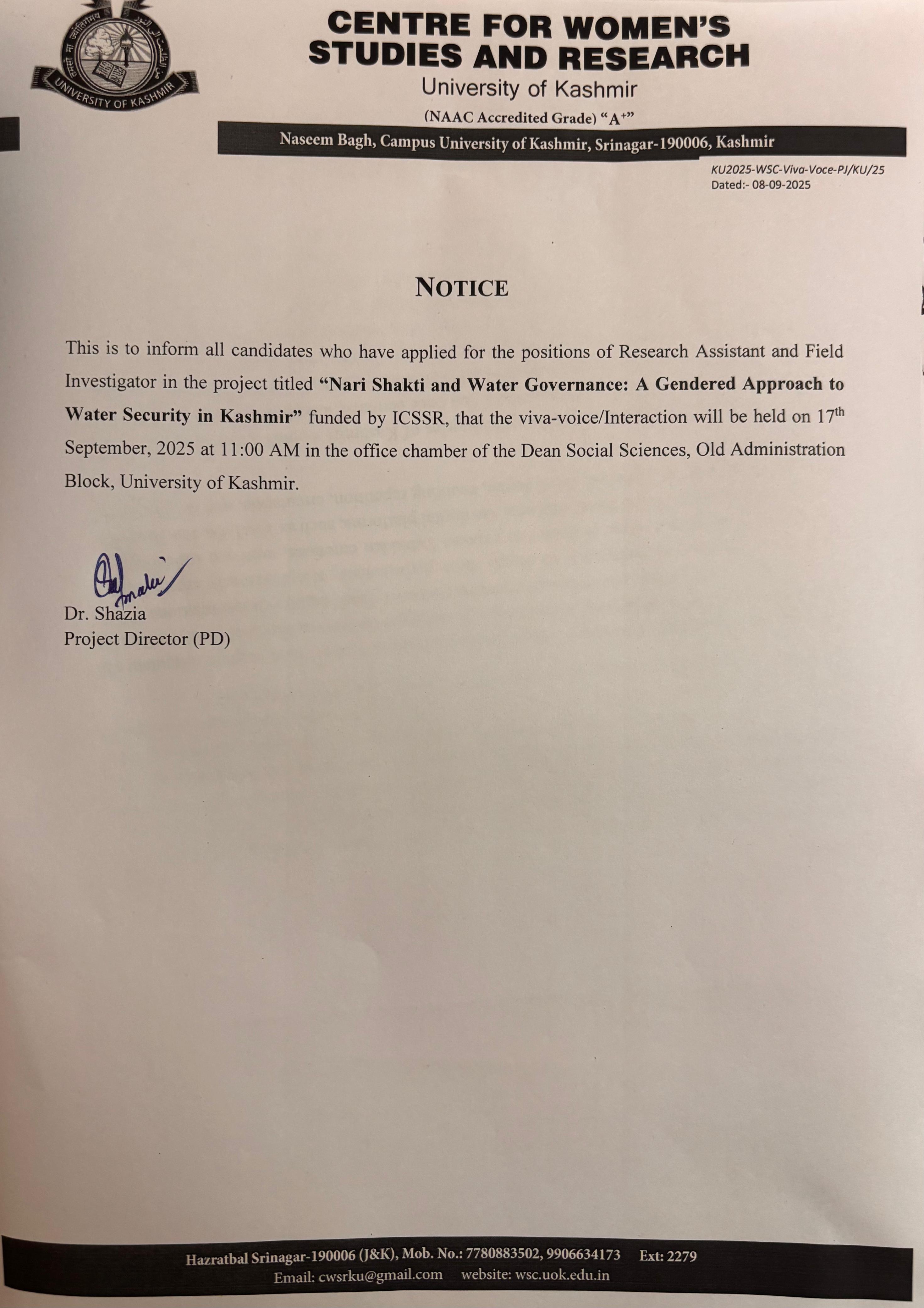 CENTRE FOR WOMENs STUDIES AND RESEARCH, University of Kashmir Conducted Webinar on 10th July 2021 on “Protection of Women against Sexual Harassment at Workplaces”